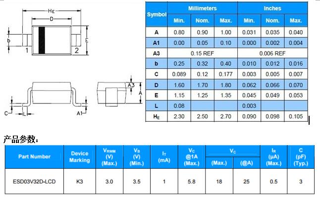SOD-323封裝:ESD03V32D-LCD